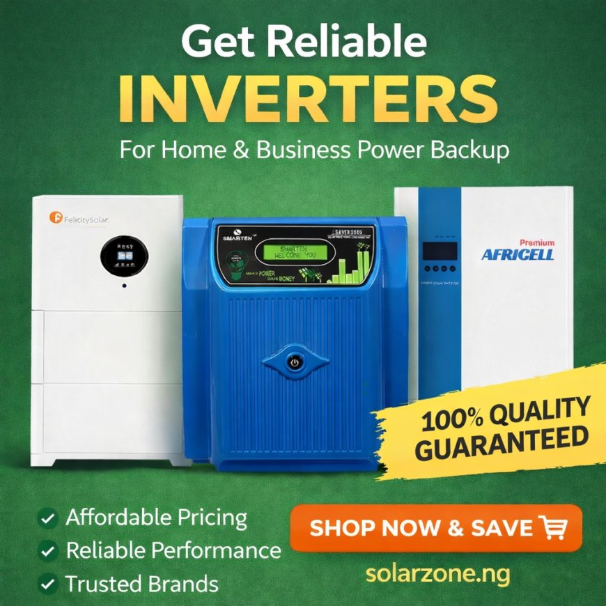 Power your home or business with reliable inverters built for smooth backup and energy efficiency. Designed for everyday use. Buy at solarzone.ng.